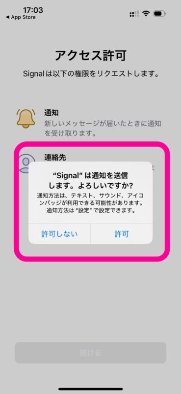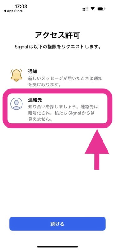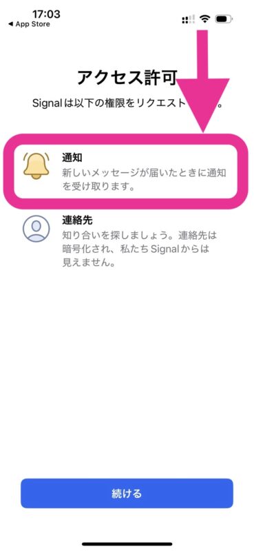 - 利用規約やプライバシーポリシーが表示されるので「続行」を選択