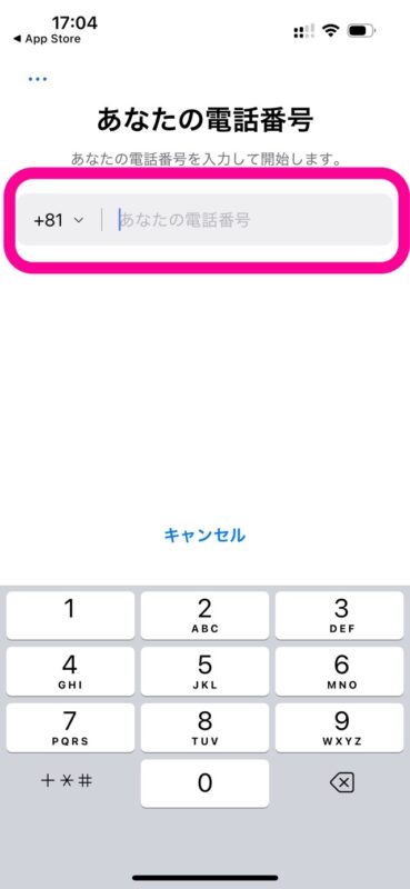 - 電話番号を入力(+81は国番号、日本の場合はそのままでOK)