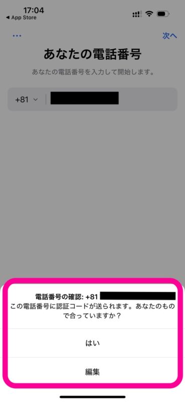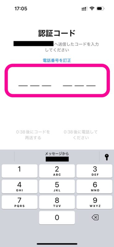 - 入力した電話番号に認証コードが送られるため、再度電話番号を確認