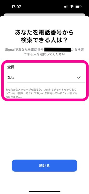 シグナル(Signal)アプリの登録は、電話番号を入力してSMS認証コードを受け取るだけで完了します。